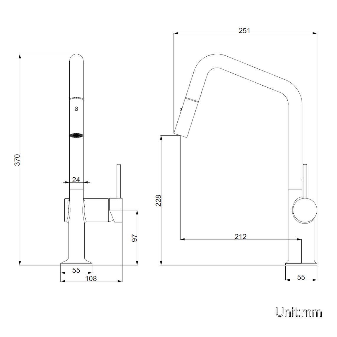 • Luxury pull-out kitchen mixer with architectural angled spout